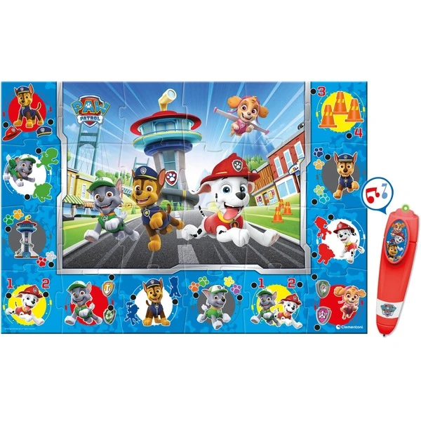 Mit diesem großen Puzzle kommt nach dem Zusammensetzen der Teile der Rätselspaß: Mit dem beiliegenden interaktiven Stift können dann Quizfragen zu Formen, Zahlen, Farben und logischen Verbindungen gelöst werden. Ist die Antwort richtig, leuchtet der Stift auf und macht einen lustigen Soundeffekt. Das aufgebaute Puzzle mit den Helden der Paw Patrol ist 98 x 67,5 cm groß.Art.-Nr.: 1914844