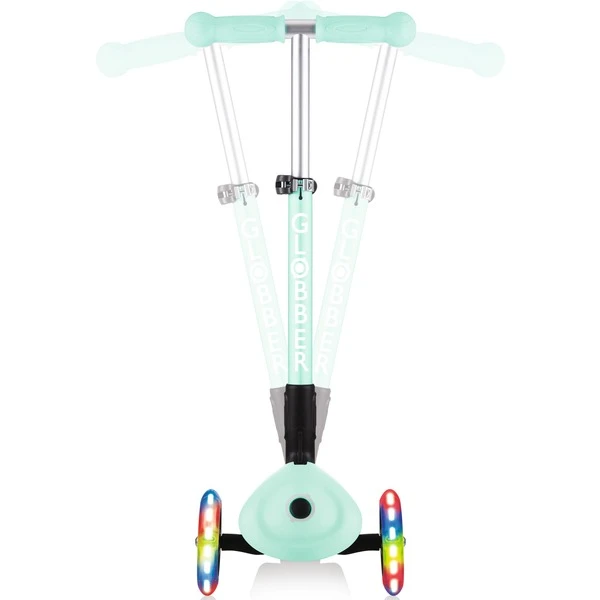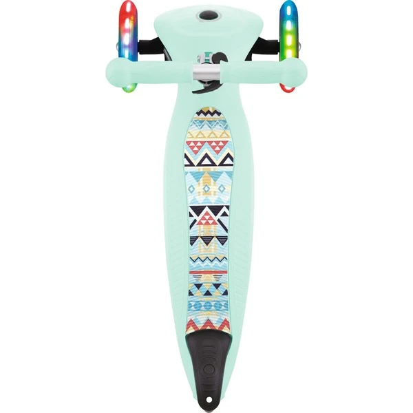 Mit dem Junior Foldabe Fantasy Lights von Globber kommen Kinder ab zwei Jahren auf Touren: Dieser Scooter steht auf drei Polyurethan-Rollen und hat ABEC 5-Kugellager. Die vorderen Rollen leuchten batteriefrei, der Lenker lässt sich in drei Höhen verstellen. Dabei kann über die Kippbewegung des Lenkers, der mit ergonomischen TPR-Griffen ausgestattet ist, gesteuert werden. Auf dem rutschfesten Deck finden auch kleine Füße sicheren Stand – die Reibungsbremse am Hinterrad verzögert zuverlässig. Zum einfachen Transport ist dieser Scooter faltbar oder kann im Trolley-Modus gezogen werden.Art.-Nr.: 1818463