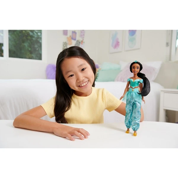 Diese Prinzessin Jasmin-Puppe ist von der großzügigen und mutigen Heldin aus „Aladdin“ von Disney inspiriert. Diese bewegliche Modepuppe trägt ein glitzerndes Outfit und besitzt Accessoires wie Schuhe und ein Diadem. Mit ihrem Look aus dem Film ist die Jasmin-Puppe für jedes Abenteuer bereit!Art.-Nr.: 1889887
