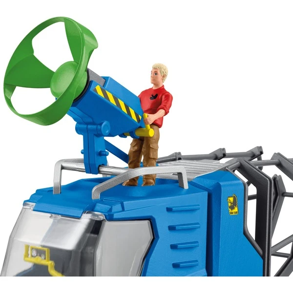 Was hat Flynn denn da von seiner Forschungsmission mitgebracht? Er hat gerade einen gefährlichen Dakotaraptor gefangen und in den Käfig des Zugwagens geladen. Das ist auch besser so, denn der riesige Dinosaurier sieht aus, als könnte er ein Problem werden. Flynn will auf keinen Fall, dass sich jemand in seinen Reißzähnen verfängt! Wie hat er es geschafft, den Dakota-Raptor zu fangen? Von der Sicherheit des Raupenfahrzeugs aus konnte er das Fahrerhaus anheben und so einen guten Überblick über die Umgebung gewinnen und den Dinosaurier von oben betrachten. Dann setzte er die Tornadokanone auf dem Dach in der richtigen Position an und wartete auf den richtigen Moment, um den Dinosaurier zu betäuben. Nachdem er von der Tornadokanone getroffen wurde, war der Dakota-Raptor ganz zahm und konnte in den Käfig geladen werden. Dieses Spielset aus der Themenwelt Schleich Dinosaurs verfügt über eine drehbare Kanone auf dem Dach, die abgefeuert werden kann.Art.-Nr.: 1908782