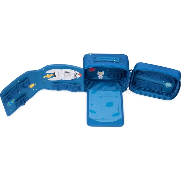 Der Bühnen-Transporter regt zum kreativen Spielen an. Die fantasievollen Hintergründe lassen Kinder in eine fantastische Welt eintauchen. Sobald die Tasche geöffnet wird, wird der Transporter zu einer magischen Bühne für Tonies und Toniebox. Pack die Lieblingstonies ein, schnappt euch den Bühnen-Transporter und los geht’s! Ob im Urlaub, bei der Oma oder beim Picknick – deine Lieblingstonies sind immer und überall dabei. Gepolsterte Innentaschen und 6 Netztaschen schützen mindestens 14 Tonies während der Reise. Dank des robusten Materials und der inneren Netztaschen sind die Tonies immer sicher verstaut! Der Oberstoff und Futter bestehen aus 100% recyceltem PET.Art.-Nr.: 1899624